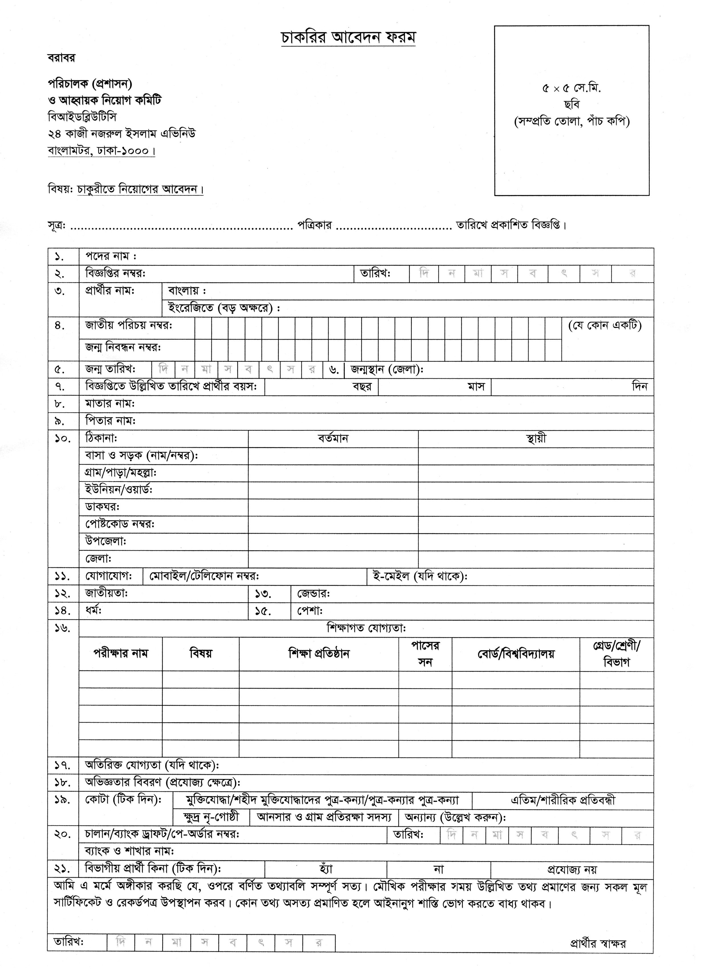 - ফরমে সঠিক ও পরিষ্কার তথ্য প্রদান করুন